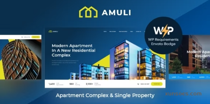 Amuli 时尚当代房地产 WordPress 主题。对于新建的公寓大楼、办公中心或出租屋来说,这是一个出色的现代解决方案。您可以使用该主题来销售单个财产对象或将其修改为房地产代理局或公司的公司页面。