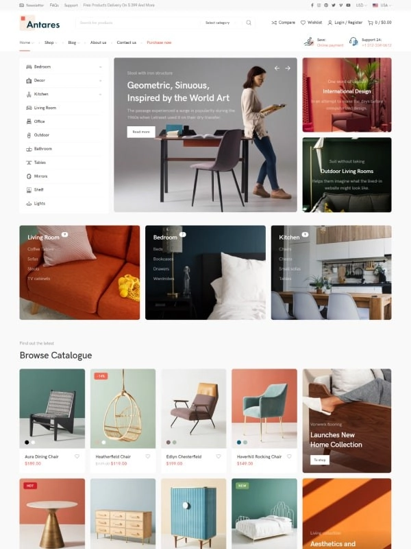 现代多用途 WooCommerce 主题,适用于家具、装饰、室内装饰和其他类型的商店。凭借其极简主义设计,几乎可以用于任何类型的在线商店。