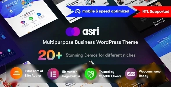 Asri 是一款适合任何人的多用途 WordPress 主题。该主题与 Elementor 集成,由 20 多个预建网站组成,包含 200 多个元素和 150 多个内页。