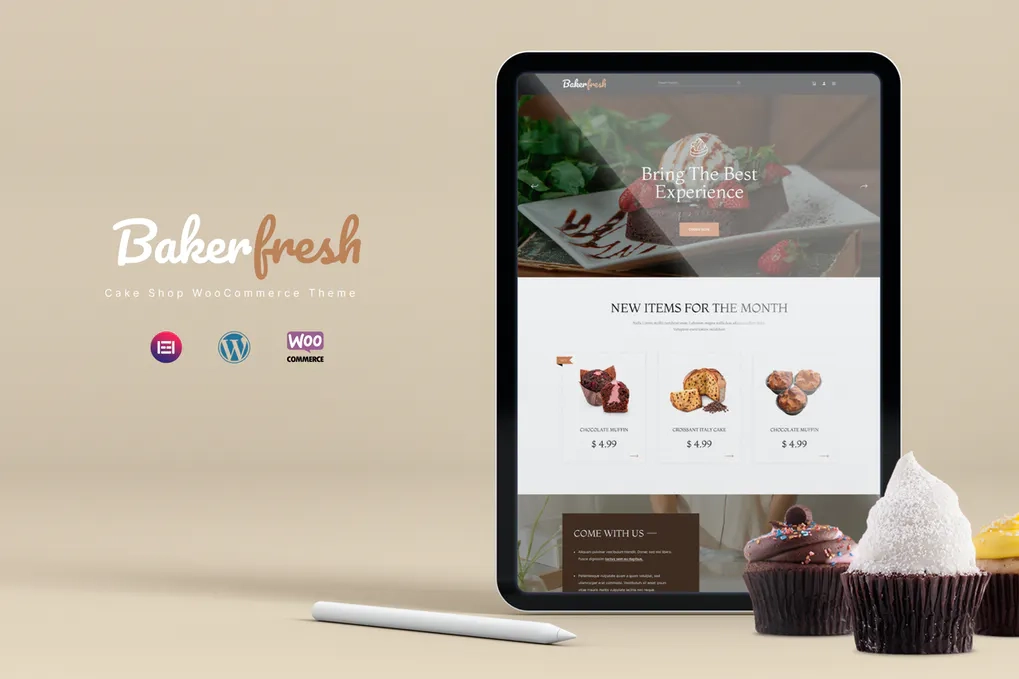 BakerFresh 是我们为蛋糕店网站设计的一个真正令人惊叹的电子商务主题。除了完全兼容 WooCommerce 之外,您还可以随意使用一组华丽的商店页面布局和元素。如果您想创建一个令人眼花缭乱的蛋糕设计师、面包店巧克力店、蛋糕店糕点面包店咖啡店网站,那就别再犹豫了;贝克新鲜来了!