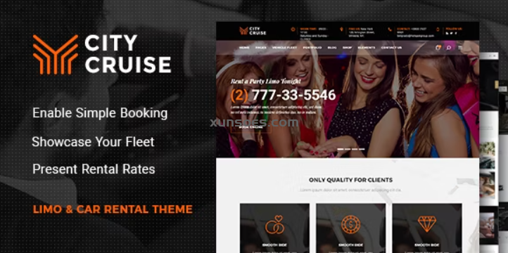 快来加入我们最精彩的城市巡游吧!这是一个当代主题,非常适合豪华轿车和汽车租赁服务以及汽车租赁公司。每个人都可以轻松地建立一个网站并以引人注目的方式展示所提供的服务。其主页是专门为上述业务制作的,并且可以根据您的需求进一步定制。您还可以指定每辆车的特征和每小时的价格。该主题的众多重要功能之一是可以在线预订车辆,您的访客一定会喜欢的。立即加入欢乐之旅并乘坐城市游轮!
