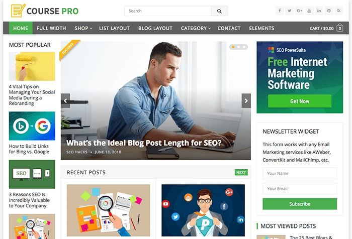 移动响应式设计 无限的主题颜色选项 无限的菜单栏颜色选项 谷歌字体选项 WooCommerce 支持 粘性导航菜单 帖子循环布局样式 标题社交图标 场地布局 特色帖子 单个帖子的左侧边栏 单个帖子上的面包屑 单个帖子的社交分享 单个帖子上的相关帖子 单个帖子的作者信息框 时事通讯订阅小部件 广告小工具 热门帖子缩略图小部件 最近的帖子缩略图小部件 浏览次数最多的帖子缩略图小部件 随机帖子缩略图小部件 “返回顶部”网站页脚上的按钮 页脚文本 版权编辑 翻译就绪 一键演示导入