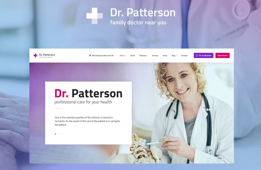 *Dr.Patterson 是一个终极美丽的通用医疗 WordPress 主题。它适合现代医院、诊所服务、诊所、救护车解决方案、护理机构、医疗机构、医疗设备商店、医疗临终关怀中心、疗养所、疗养院甚至疗养院业务领域的任何现代项目。 它还适合健康和美容行业,如皮肤科诊所、美容机构、护肤品商店、发型设计、指甲护理、整形外科、美容诊所、发型设计、美容诊所、激光手术、水疗中心、健康医院、按摩和美容护理,我们的新产品主题是您的完美选择。医学医疗保健 WordPress 主题很棒的功能 * 6 个预制主页 * 在线预约 * 预约管理 * 在线安排时间表 * 高级联系表格 * 预制模块:诊所医生单页、定价和服务 * 为医学医疗保健 WordPress 主题 Dr.Patterson 制作插件与 WPBakery 页面生成器兼容。它适合美容师、皮肤科医生、外科医生、光动力疗法、身体轮廓、冷冻疗法、皮肤手术、激光治疗、医疗修复嫩肤,并可以安排预约。 该主题是一个易于使用、现代、高度响应和 100% 视网膜就绪的 WordPress 设计,由于内置的​​帖子类型(服务、感言、团队成员等),它将以最有效的方式展示您的服务,与 Slider Revolution(如果安装为主页滑块,会立即引起注意)、WP Bakery Page Builder(用于构建更独特的页面布局)、Booked Appointments(用于安排与患者的会议)等流行插件的兼容性。