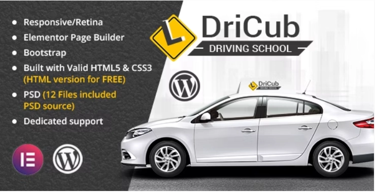 DriCub Driving School WordPress Theme 2.9 GPL Theme