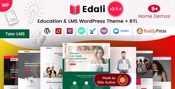 Edali 是一款创意响应式 WordPress 主题,专为在线培训和教育利基网站设计和构建!该主题适用于教育机构、在线课程提供商、在线培训、学习管理、LMS 等网站。该模板是使用 Elementor、ACF Pro、Redux、WooCommerce、Learnpress、LearnDash、Tutor LMS、BuddyPress、Bootstrap 5.x 和 CSS 创建的。此外,Sass 也包含在模板包中。