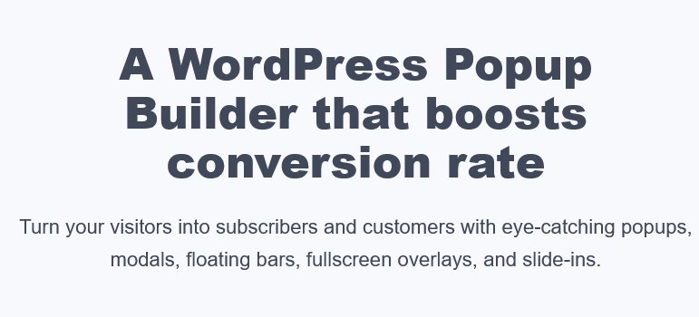 通过引人注目的弹出窗口、模式、浮动栏、全屏覆盖和幻灯片,将您的访问者变成订阅者和客户。