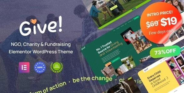 Give 是一个慈善 WordPress 主题,适用于非政府组织、筹款组织、非营利机构以及其他政府、私人和国际慈善基金。这个非营利性 WordPress 主题具有多个小众演示,只需单击几下即可将每个演示变成一个现成的慈善网站。
