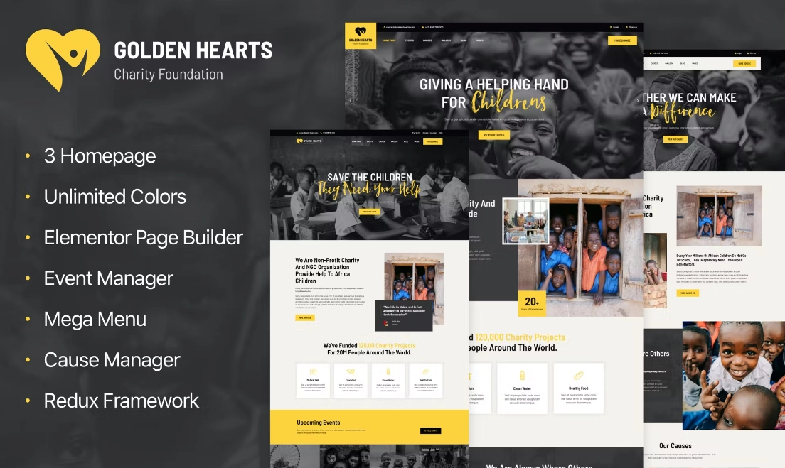 金心是一个富有创意且本质上灵活的主题,旨在为与非政府组织、慈善活动、活动相关的各种项目打造一个坚实且受人尊敬的在线平台。以此主题以专业的方式传播对某项事业的认识,并在今天普及您的组织。