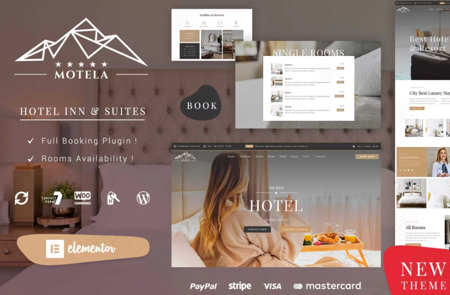 酒店 WordPress 主题 Motela 专为所有酒店、住宿加早餐酒店、度假村、汽车旅馆、旅馆和假日活动而设计,包括出色的 Elementor 页面构建器。您可以添加包含所有客房酒店信息的不同页面,并添加自定义页面以接收预订。 Motela hotel inn suites WordPress 主题非常适合所有酒店,如度假村、露营地和汽车旅馆。