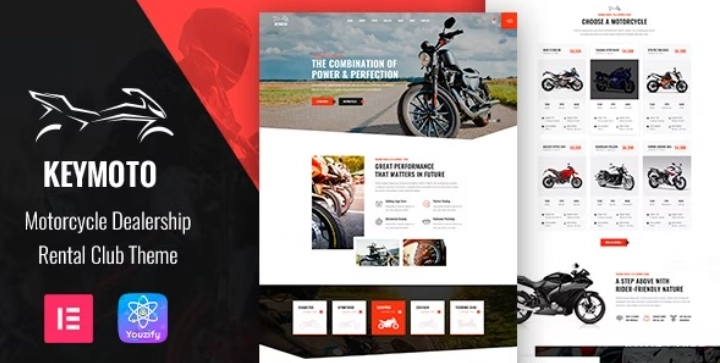 Keymoto 是一个 WordPress 主题,旨在帮助您为摩托车卖家和赛车爱好者构建创意网站。它具有有吸引力且简洁的设计,可确保您的在线页面吸引目标受众。