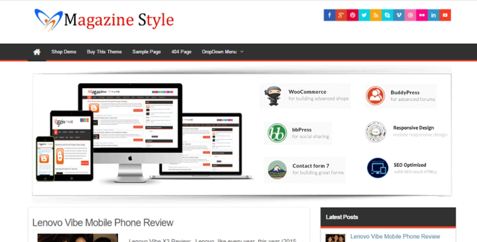 杂志风格主题是适合您个人和商业目的的最佳 WordPress 风格主题。凭借 SEO 优化的完整功能,该主题可以轻松适应您的移动设备、桌面设备或任何其他设备。该主题有很多定制功能,可以轻松与 facebook、google+、twitter、pinterest、rss、skype、vimeo、dribbble、flickr、linkedin、youtube 和 Adsense 等社交媒体连接。它支持所有出色的 WordPress 功能,非常适合复杂的网站和博客。