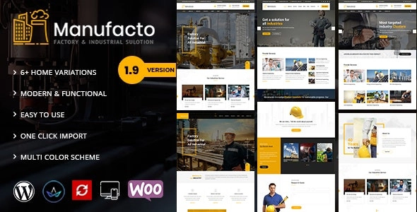 Manufacto 是专门为制造行业、工厂和工厂设计的 WordPress 主题。 Manufacto 主题具有美丽而独特的设计,最适合您的在线网站。它具有 100% 响应式设计,并在所有主要手持设备上进行了测试。 Manufacto 配备了您在线展示的必要功能,如项目、博客、推荐和团队页面等。Manufacto 是您在线展示的绝佳选择。正在寻找发布您的公司网站吗?这个主题是最好的选择。 功能一览:​ 拖放页面 Manufacto King Composer(节省 39 美元): 快速、直观且智能的页面 Manufacto 将使您的定制变得快速、轻松。您的布局将在一分钟内准备好发布! 滑块革命(节省 25 美元): 使用 Revolution Slider 轻松创建具有不同动画效果的令人惊叹的幻灯片 演示内容包括: Manufacto 开箱即用。通过 FTP 或 WordPress 快速安装它,激活后即可加载演示内容。然后您可以在已经设计的页面上添加您自己的内容。 一键安装: 使用我们强大的一键安装程序安装 Manufacto。立即启动并运行您的网站!快速、简单、快如火箭! 响应视网膜准备就绪: 如今,您的网站在移动设备上的外观非常重要。因此,我们确保 Manufacto 在移动、桌面和视网膜屏幕上看起来都很棒! WPML 翻译就绪: Manufacto 与最流行的 WordPress 插件兼容,支持创建多语言布局。使用 WPML 将您的网站翻译成任何语言! 高级排版选项: 通过强大的主题选项面板选择任何 Google 网络字体库!现在您可以为您的品牌设定独特的风格! 与联系表 7 兼容: Manufacto 与最强大和最流行的自定义联系表单 WordPress 小部件兼容!在几秒钟内创建您自己的表单! 强大的框架: Manufacto 基于最流行、完善、强大的 vafpress 主题选项框架! 包含 PSD 文件(价值 12 美元): 现在您可以先在 Photoshop 中进行自定义,因为我们已在此包中包含 PSD 文件。 详细文档: 有关如何设置和自定义 Manufacto 的大量文档将使您的自定义变得超级简单和快速! 跨浏览器兼容性: Manufacto 在包括 IE9+ 在内的所有主流浏览器中看起来都很棒。 完整功能列表​ 100% 流体响应完美适合任何设备 在真实设备上测试 灵活布局 使用我们的演示布局或使用页面 Manufacto 和功能丰富的后端创建您自己的视觉不同体验。 无限侧边栏 定制和定制 King Composer 组件 视网膜优化 WordPress 多站点测试 高级管理面板 演示导入、内容和滑块 社交链接 底部页脚小部件 干净的注释代码 高级版式 Google Fonts 提供 600 多种字体系列 自定义字体支持 自定义页面模板 像素完美设计 快速简单的安装设置 自定义 CSS 就绪 包含儿童主题 HTML5 CSS3 通过可变内容部分轻松定制 自定义构建主题页面选项 SEO 就绪 可使用 .pot 翻译文件本地化 WPML 多语言插件扩展支持 各种帖子格式 无限页数 用于定制的自定义小部件和智能管理面板 可定制的联系表格,支持联系表格 7 全屏背景滑块 跨浏览器兼容性 宽盒装布局 有据可查的更多…。