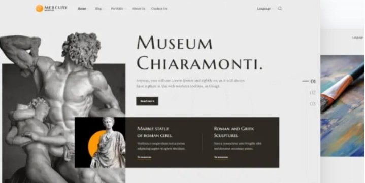 使用 Mercury 创建现代博物馆或科学协会网站。其多功能设计和无限功能对于短途旅行导游和活动经理也非常有用。