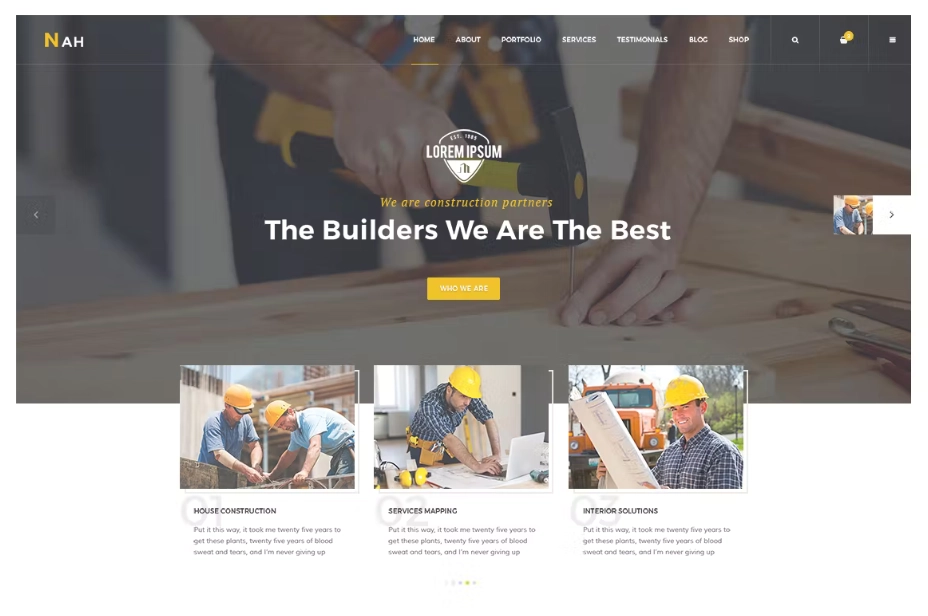 Nah Construction,建筑商业 WordPress 主题 NAH Construction 是一个基于建筑的 WordPress 主题。该主题专为建筑公司、建筑、工程、建筑网站设计。有 4 种不同的主页版本和 4 种标题样式、排版选项、流畅的 WooCommerce 集成、创意组合展示、无限的配色方案。这是一个富有创意和独特设计的主题。