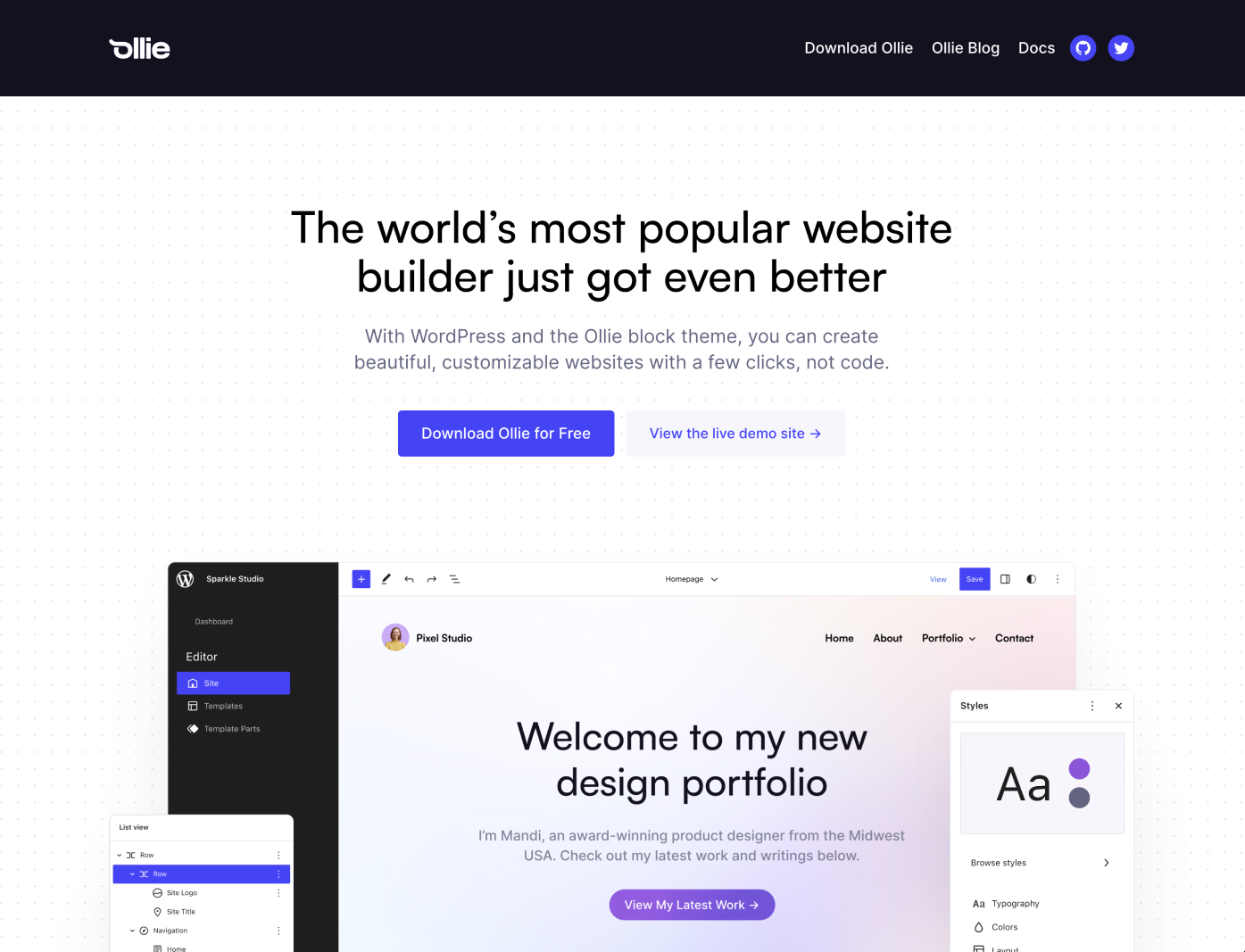 将 Ollie Pro 模式库和 Ollie Pro Dashboard 添加到 Ollie 块主题。