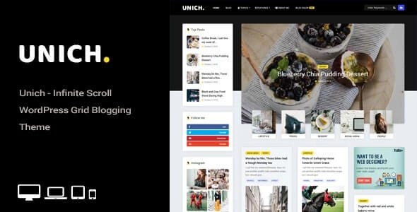 Unich Infinite Scroll WordPress Blogging Food Recipes Theme 1.4 GPL Theme