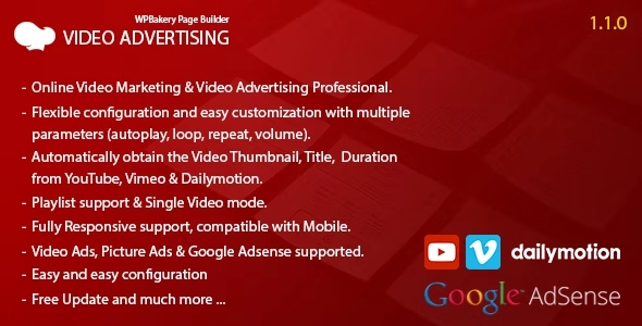 在线视频营销和视频广告专业.. 具有多个参数(自动播放、循环、重复、音量)的灵活配置和轻松定制。 自动从 YouTube、Vimeo 和 Dailymotion 获取视频缩略图、标题、时长。 播放列表支持和单视频模式。 完全响应式支持,兼容移动设备。 支持视频广告、图片广告和 Google Adsense。 2 个布局 x 2 个主题。 轻松简单的配置。 免费更新等等……