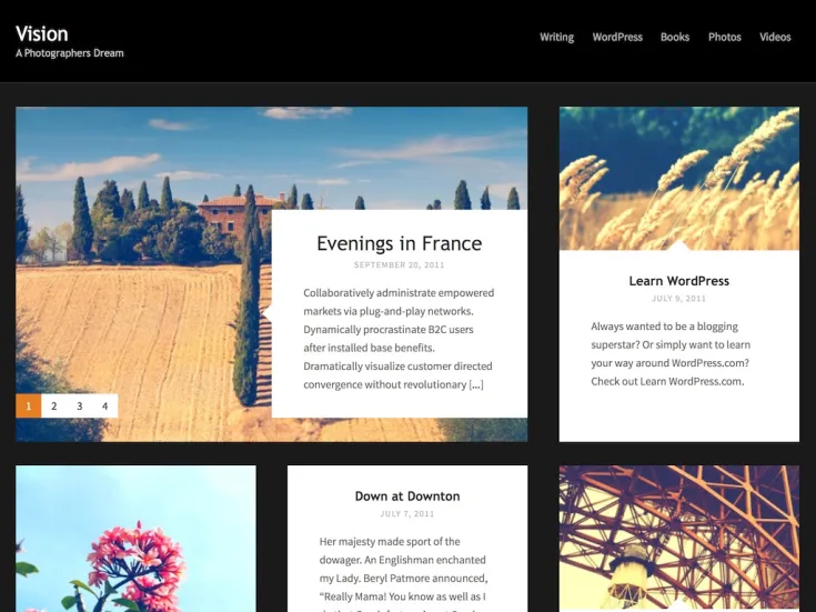 Vision 是一个干净的、基于网格的摄影主题,具有扁平化的简约设计。非常适合展示您的技能。
