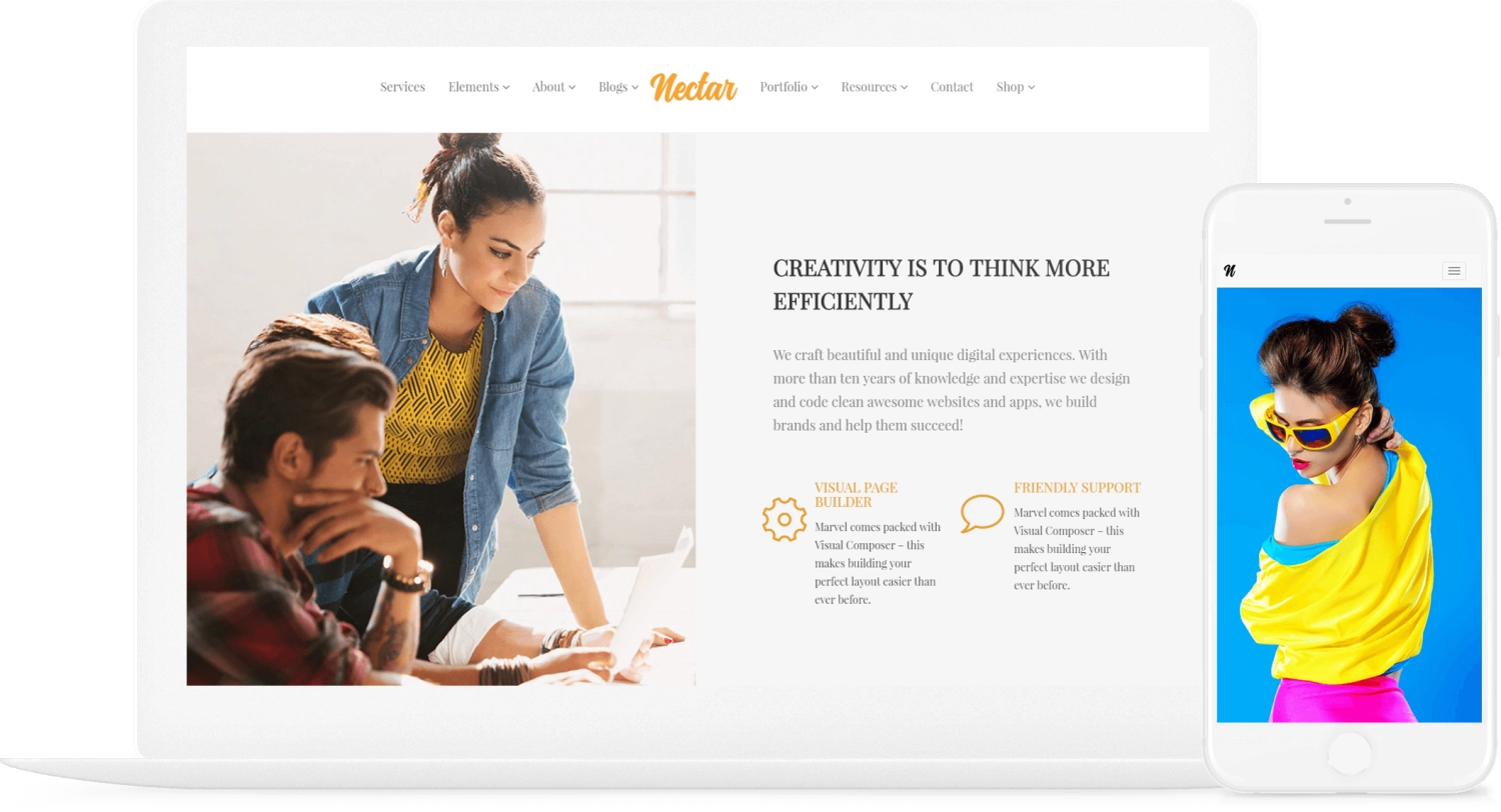 Nectar WordPress 主题配备了最先进的实时网站构建器。拥有最新的技术、令人愉悦的用户体验和最美丽的设计趋势。 Nectar 提供了一个平台,可以简单地拖放元素、选择样式并立即查看结果。您实际上可以在几分钟内创建一个完整的网站!
