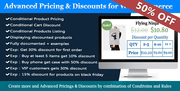 使用 WooCommerce 动态定价和折扣规则插件为 WooCommerce 创建批量折扣、购物车折扣、百分比折扣、高级折扣、动态定价、基于产品数量的折扣、动态运输方式和高级运输方式。 WooCommerce 动态定价和折扣插件 &Easy WooCommerce 折扣插件提供明确定义的解决方案,帮助您在 WooCommerce 商店中设置最佳折扣优惠。它对于初学者来说简单且开箱即用,并且为专业用户提供了高级功能。