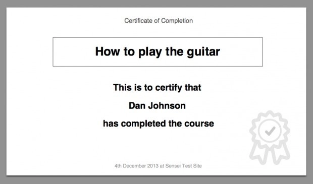 没有一种感觉很像它。您努力学习,参加了考试并通过了(我确信,非常出色)!经过所有努力,您终于完成了课程。您想与所有人分享这一荣誉。打印您的证书! 借助 Sensei LMS 证书,您的学生通过在线学校完成的每门课程都会获得一份证书。这些证书可以下载、打印并装裱在办公室墙上,或贴在冰箱上供全家人享用。如果您想公开证书以供所有人查看,也可以这样做。