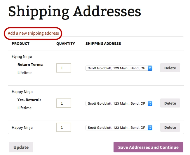 允许客户将包含多种产品或数量的订单运送到不同的地址,而不是强迫他们为不同的送货地址下多个订单。