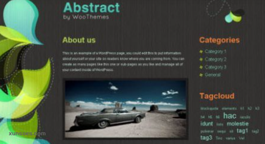 Abstract 是 Woo Themes 推出的一款有趣、丰富多彩的博客风格高级 WordPress 主题,它整齐地布局在宽敞的网格结构中,并融合了形状和曲线。