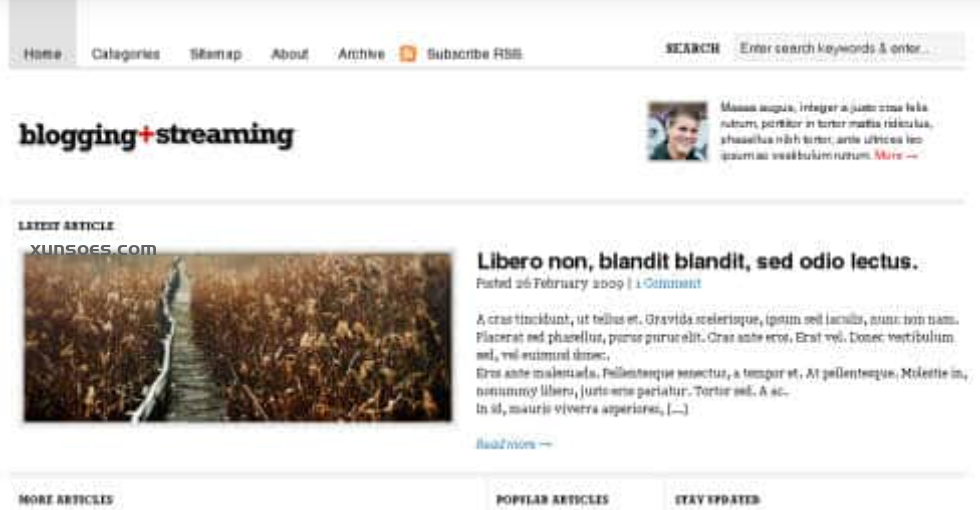 Bloggingstream 是 WooThemes 的多用途高级 WordPress 主题,可用作个人博客或杂志/新闻网站。该主题具有集成的生命流、2 种不同的布局选项、7 个可帮助您赚钱的广告空间、一个主题选项页面、11 种不同的配色方案等等。
