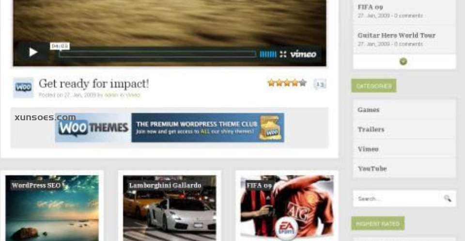 在受到一些批评后,WooTube 视频主题主页看起来就像一个帖子,Woo Themes 发布了更新的 Woo Tube,其中包含一个精美的新可选主页布局,看起来棒极了。现在无需将视频添加到您的帖子中,因此主题可以用于普通博客/画廊/作品集或您喜欢的任何其他方式。