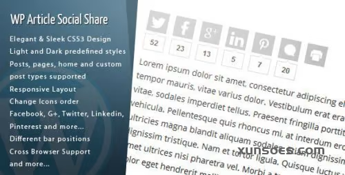 文章社交分享插件在您的文章和页面中添加了一个时尚的社交栏,以增加您的页面浏览量。 功能: 优雅时尚的 CSS3 设计 超快的分享按钮加载 请参阅 wp-admin 端的帖子/页面列表中的共享计数器 浅色和深色预定义样式 支持帖子、页面和自定义帖子类型 在索引页面(包括主页)上显示社交共享图标 响应式布局 更改图标顺序 Facebook、G+、Twitter、Linkedin、Pinterest、Tumblr、Digg、Reddit、Delicious、Stumbleupon、Buffer、Vkontakte、打印、评论。 不同的酒吧位置 禁用特定帖子/页面中的社交分享栏 跨浏览器支持