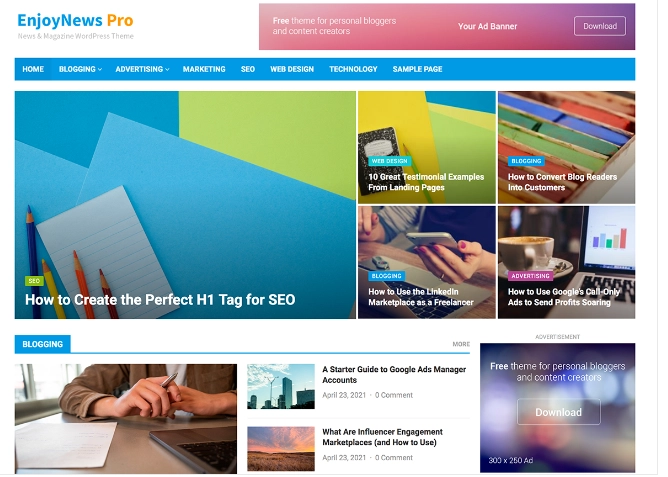 EnjoyNews Pro 是一个新闻杂志 WordPress 主题,适用于基于内容的网站。它为您的内容提供了精彩的展示,非常适合个人博客、新闻和杂志网站。